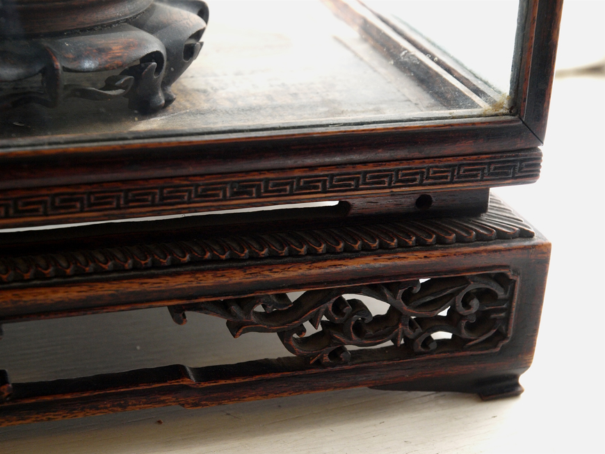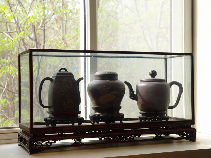 两只壶应该一个是汉方壶、一个是高灯壶,难得的是,从养护到保存,如此完好!就那个罩子也是不可多