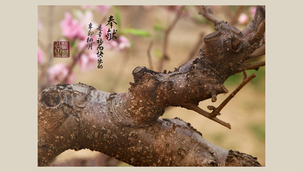 喜欢这样表现桃花,拍的好!桃花儿的魅力容颜是需要那些粗皮来衬托的。正如邻居老师说的,力与美的完美结合。