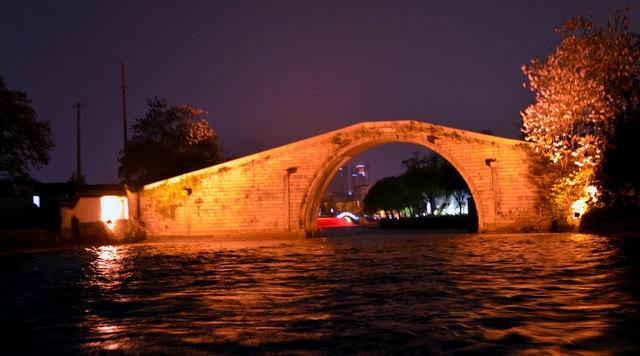 苏州护城河如同天津的海河,所不同的是天津海河周边多是现代建筑,苏州护城河保留的多是古迹,坐游船夜游苏州护城河别有情趣。