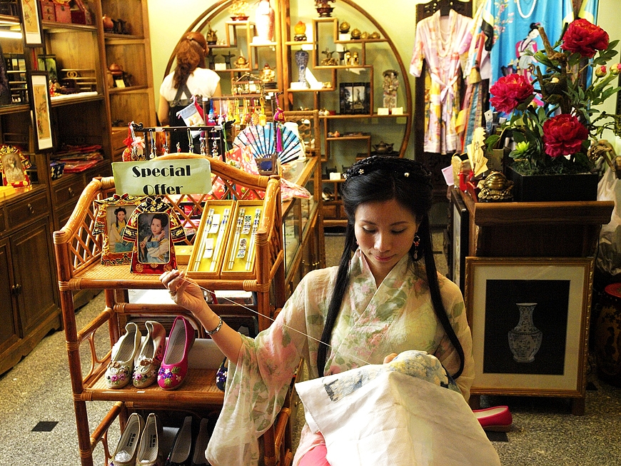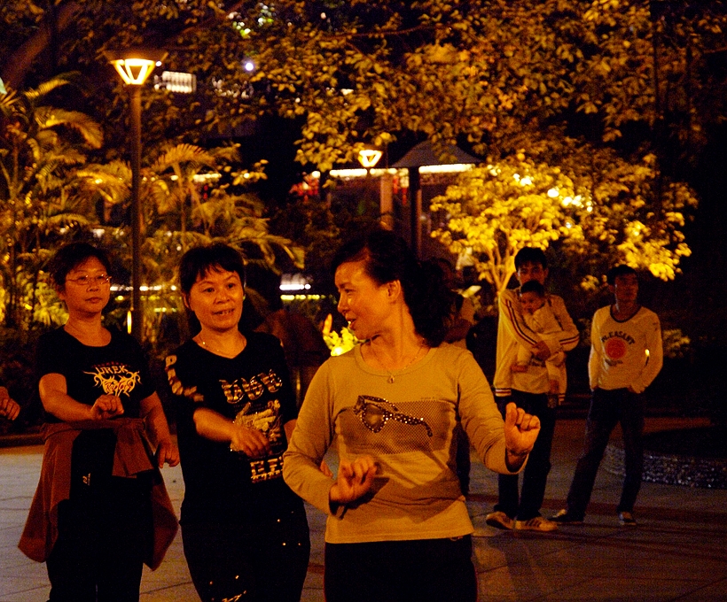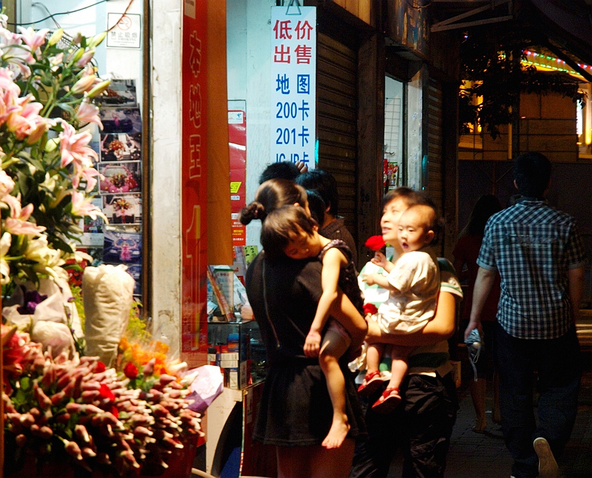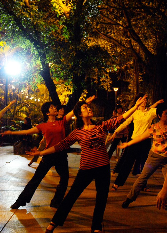 有一个镜头,虽然没有拍下来,但是却固执地扎根在我的心里了。那就是同一天晚间,我沿着上下九走出来向着珠江行进,路过一个货运站(大约晚间10点了),大铁门没有关,门口坐在小板凳上的两名转运工正在喝茶,在那样的一个闹市、那样的一个劳累后的夜晚,那样的两位同胞的那样的一种状态使我很想把他拍下来,我想这才是真正的茶文化,我已经走过去了,又折回头走到他们身边问:我想把您们喝茶的样子拍下来,可以吗?其中的一位回答:没有什么好拍的啦,消磨时间的啦。我只好笑了笑,收起相机。他们对我说,你喝茶吗?坐下来一起喝的啦。因为妹妹在酒店等我,所以我谢绝了,路上一直在想,其实要是一起喝了茶,这张照片就留下来了,,,,,,