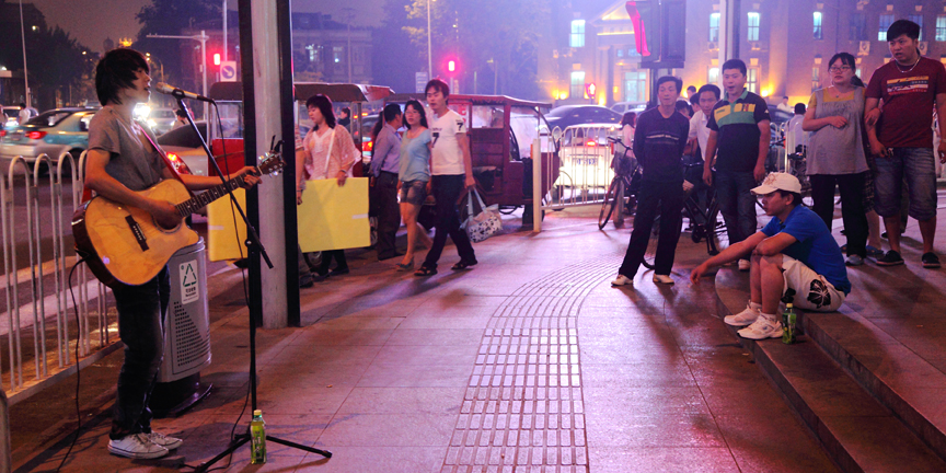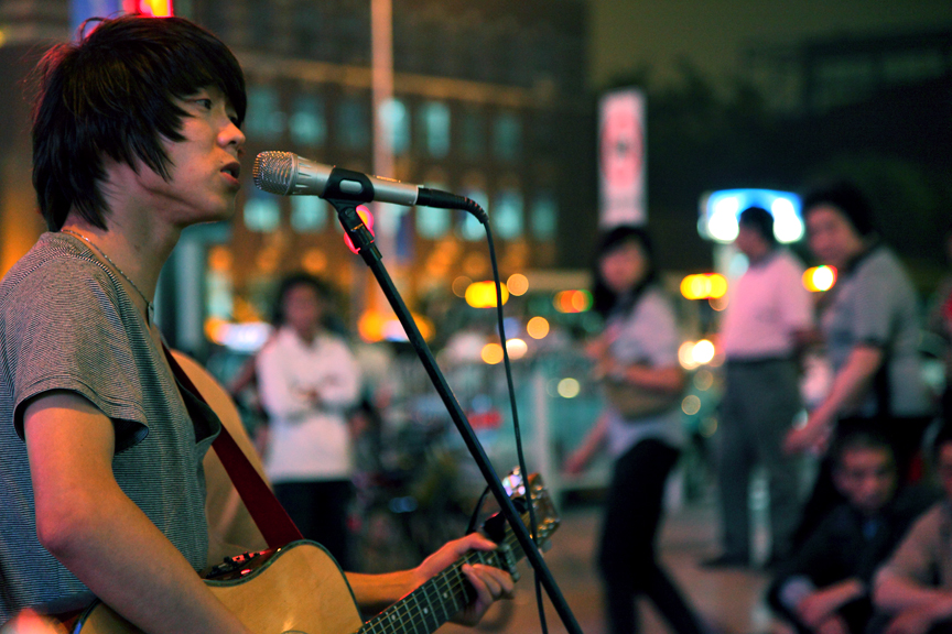 昨天晚7点,在南京路津乐汇的门前。看到一男孩弹着吉他唱着歌,感觉很好,拍了下来,有点小意思。哈...