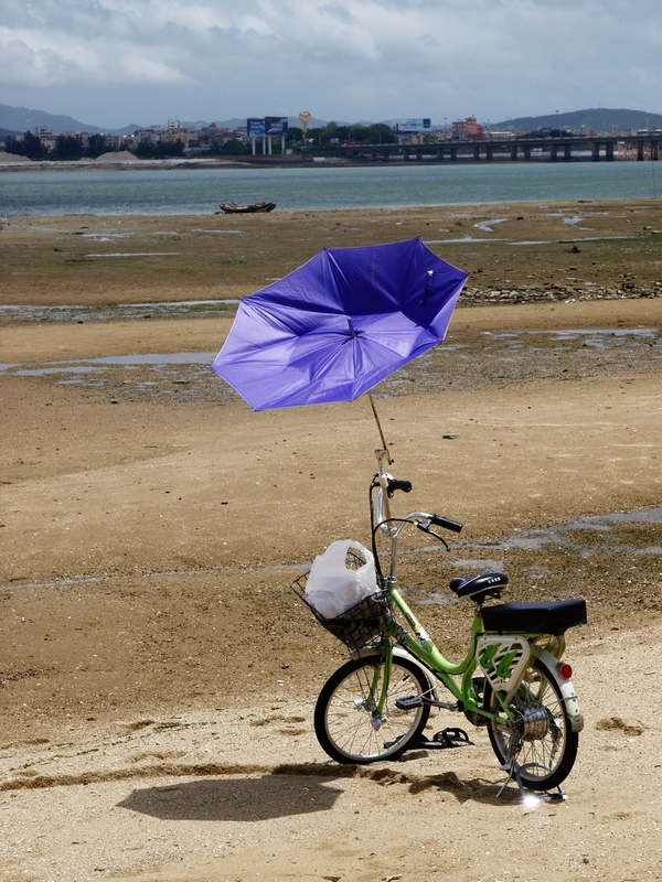 这几张片子中,我也最喜欢这一张。远远看到海边沙滩上有一部电动车,所以跑去拍下来了,同事们很是不解,这破车有什么好拍的呢?