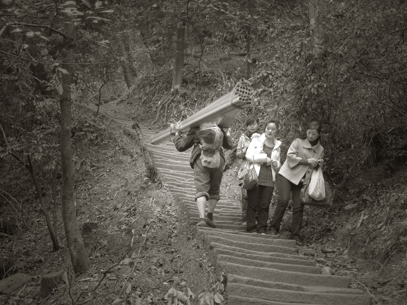 在武夷山我们也有登山过程,也遇到了“背山工”,我渴望拍下他们(因为我心底强烈呼唤与呐喊),我也观察了其他带相机的老师们(几乎半数有相机,单反包括我在内有四部),除了我之外,还没有去拍同事、风景以外的人和事的。我想这应该是处于一种责任驱使(虽然在有些人看来很可笑,,,,,,),是摄影走向更高境界的一种表现!